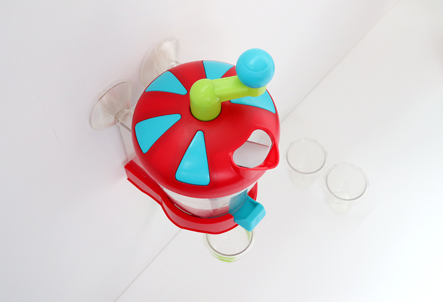 손잡이를 잘 저어 젤리를 만들어 준 뒤, 손잡이를 오른쪽으로 밀어서 젤리를 컵에 담아주세요.