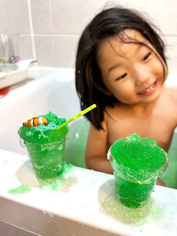 3. 놀이가 다 끝나면 젤리를 목욕물에 넣어 배수해주세요.