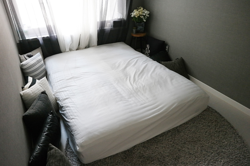 원래는 이렇게.. 매트-토퍼-패드->매트커버로 한꺼번에 씌워서 사용하는 제품이에요.