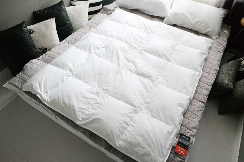 구스다운이불의 장점은 다들 아실꺼예요, 안덮은듯 가볍고, 체온조절을 용이하게 해주지요.
