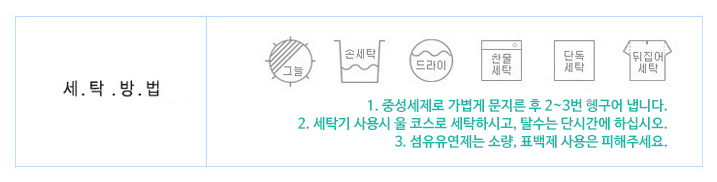 그냥 편히 물세탁(미온스, 중성세제, 울코스만 지켜주세요!)하신 후 자연건조 해주시면 되세요.